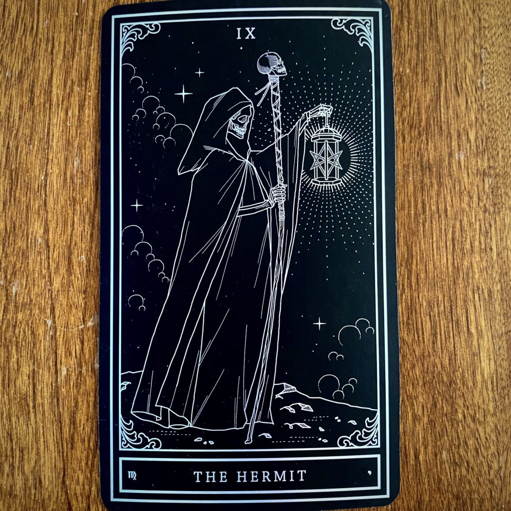 The Hermit- Wanting quiet alone time for introspection. Disconnecting from the hustle and bustle of the outside world. A very spiritual time in which you are lead by the divine. Seeking clarity and searching for answers.